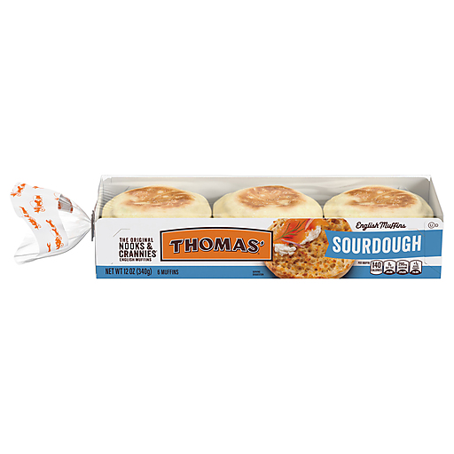 Delight in the morning magic of Thomas' Sourdough English Muffins, 6 count, 12 oz, where each bite is a charming adventure into the world of flavor. Renowned for their signature Nooks & Crannies that cradle your favorite spreads or butter, these muffins offer a delightful combination of a crispy exterior and a soft, airy interior. Enjoy the sophisticated taste of sourdough, elevating your breakfast routine with every fluffy morsel. Perfect for toasting, they transform into a warm canvas for butter or jam, inviting connection and togetherness around the breakfast table. Kosher (OU Dairy) and crafted with care, these light English muffins embrace tradition while offering a modern twist. Savor the goodness of Thomas' Sourdough English Muffins and turn your mornings into a flavorful journey.