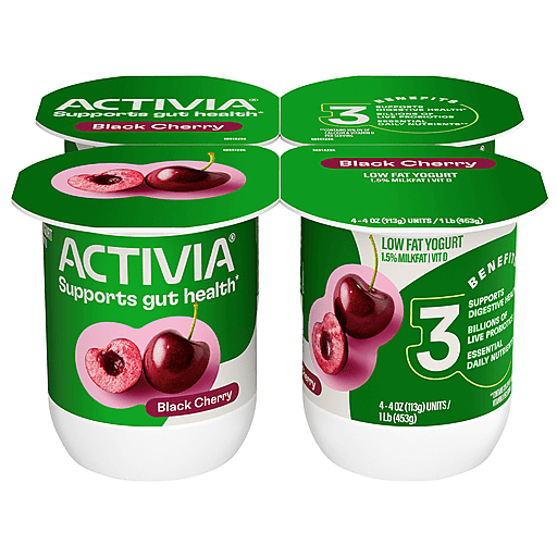 Start every day with Activia Probiotic Black Cherry Lowfat Yogurt Cups, as part of your routine, from the #1 doctor-recommended probiotic brand.*** Every spoonful is full of delicious black cherry flavor and creamy texture. Plus, each serving is packed with our proprietary blend of live and active cultures and our exclusive probiotic. Probiotics are the living microorganisms that have been studied and shown to provide specific health benefits, including supporting gut health.* Activia yogurt contains Bifidobacterium lactis DN 173-010/CNCM I-2494, which has been studied and shown to survive passage through the gastrointestinal tract. Making Activia probiotic yogurt a part of your day is an easy way to help support your gut health. Grab an Activia black cherry yogurt for an easy and delicious breakfast, mix it into a yogurt smoothie or enjoy one in the afternoon as an on the go snack. Your gut is where it all begins. Start with an Activia Probiotic Lowfat Yogurt. *Enjoying Activia twice a day for two weeks as part of a balanced diet and healthy lifestyle may help reduce the frequency of minor digestive discomfort, which includes bloating, gas, abdominal discomfort & rumbling. **Contains 10% DV of calcium & vitamin D per serving. ***Based on a 2024 national weighted survey of 300 doctors.