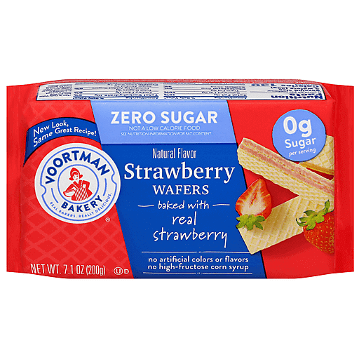 Sugar-free snacking just got sweeter! Baked with strawberries, these mouthwatering VOORTMAN BAKERY Zero Sugar Strawberry Wafers contain no added sugar, high-fructose corn syrup, artificial colors or flavors, so you can feel better about saying, “How about one more?!” Plus, with 30% less net carbs than regular wafers, you and your guests can feel better about snacking on this fresh, flavorful treat. These zero sugar strawberry wafers come in a convenient resealable package. Enjoy them with a glass of milk or yummy cup of coffee when you're having solo snack time. When friends and family come over, put VOORTMAN wafers on a platter for fast and easy entertaining that's sure to delight.